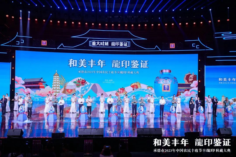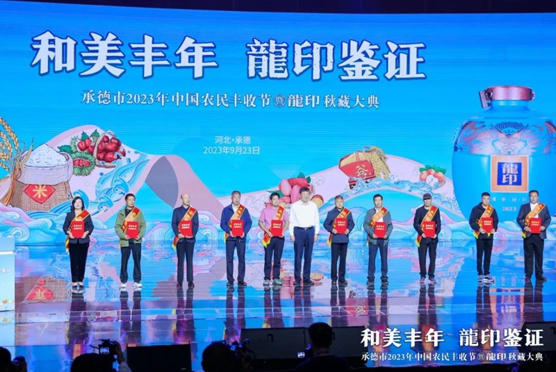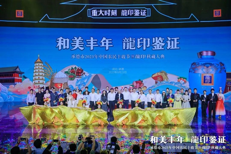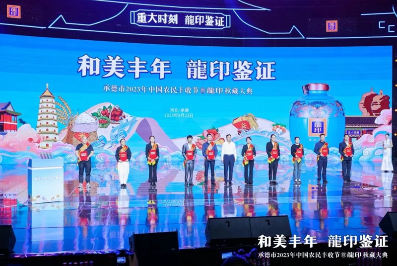 禮贊豐收年,共品龍印酒。9月23日,由承德市人民政府、河北廣播電視臺(集團)聯(lián)合主辦;由承德縣人民政府、承德市農(nóng)業(yè)農(nóng)村局、承德市體育局協(xié)辦;由承德縣農(nóng)業(yè)農(nóng)村局、河北板城酒業(yè)、河北廣電廣告有限責任公司承辦的承德市2023年中國農(nóng)民豐收節(jié)暨龍印秋藏大典在承德市奧體中心圓滿落下帷幕。板城酒業(yè)駕起卓越追求的時代巨輪,乘歷史文脈之槳,掌匠心傳承之舵,揚帆起航,再次譜寫龍印“秋藏大典”品牌文化IP的時代篇章。