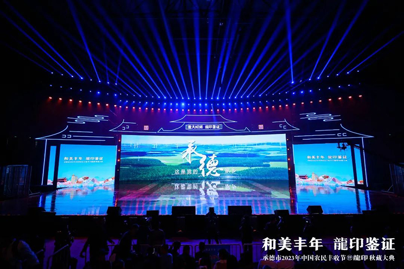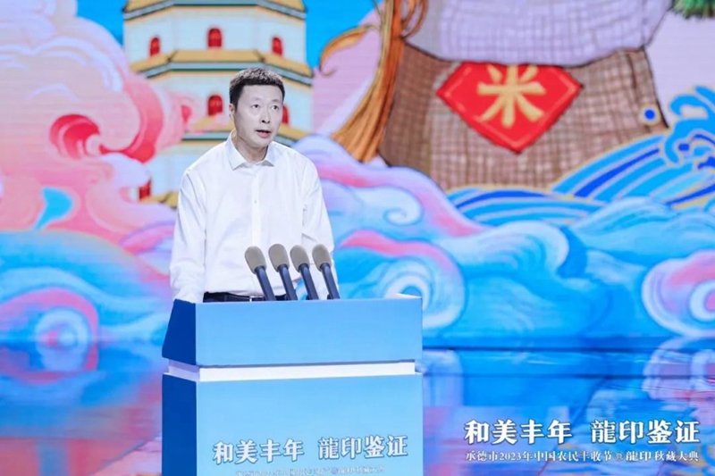 整場慶典以記錄承德人民美好生活、美景美食、農(nóng)業(yè)碩果的視頻《承德十二時辰》拉開帷幕。承德市人民政府副市長崔萬峰率先上臺致辭,并對承德市2023年中國農(nóng)民豐收節(jié)暨龍印秋藏大典的召開表示熱烈祝賀。
