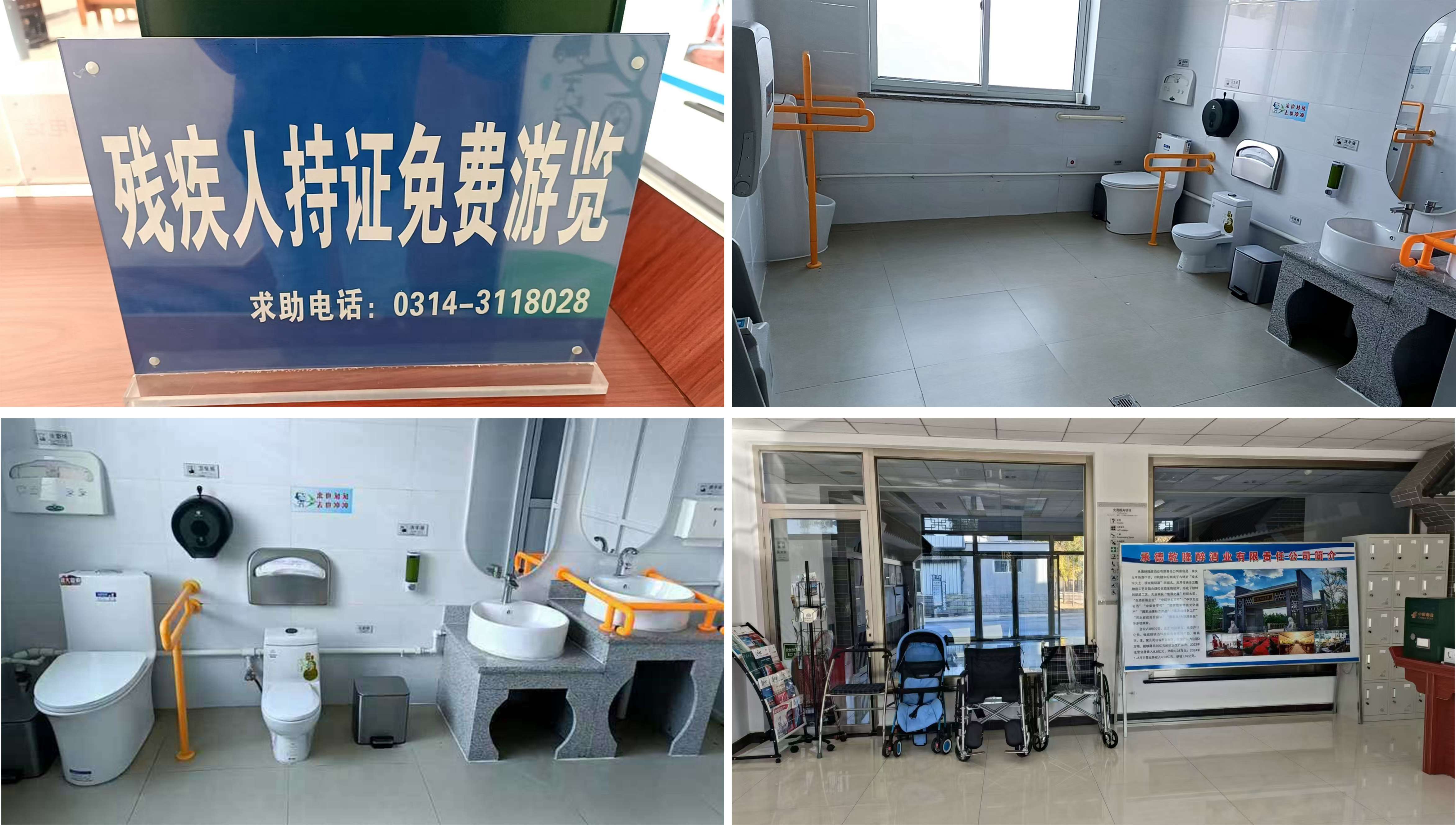 板城酒博園自創(chuàng)建之初,就按照A級景區(qū)標(biāo)準(zhǔn)來打造,充分考慮殘疾人保障政策的落實。在游客中心,設(shè)立殘疾人免費公告牌,并安排專人負責(zé)陪同和照顧;游客中心設(shè)置了殘疾人無障礙衛(wèi)生間、洗漱池、防滑地板等,免費為行動不便人群提供輪椅、拐杖等,使殘疾人也能享受到平等的參觀瀏覽待遇。