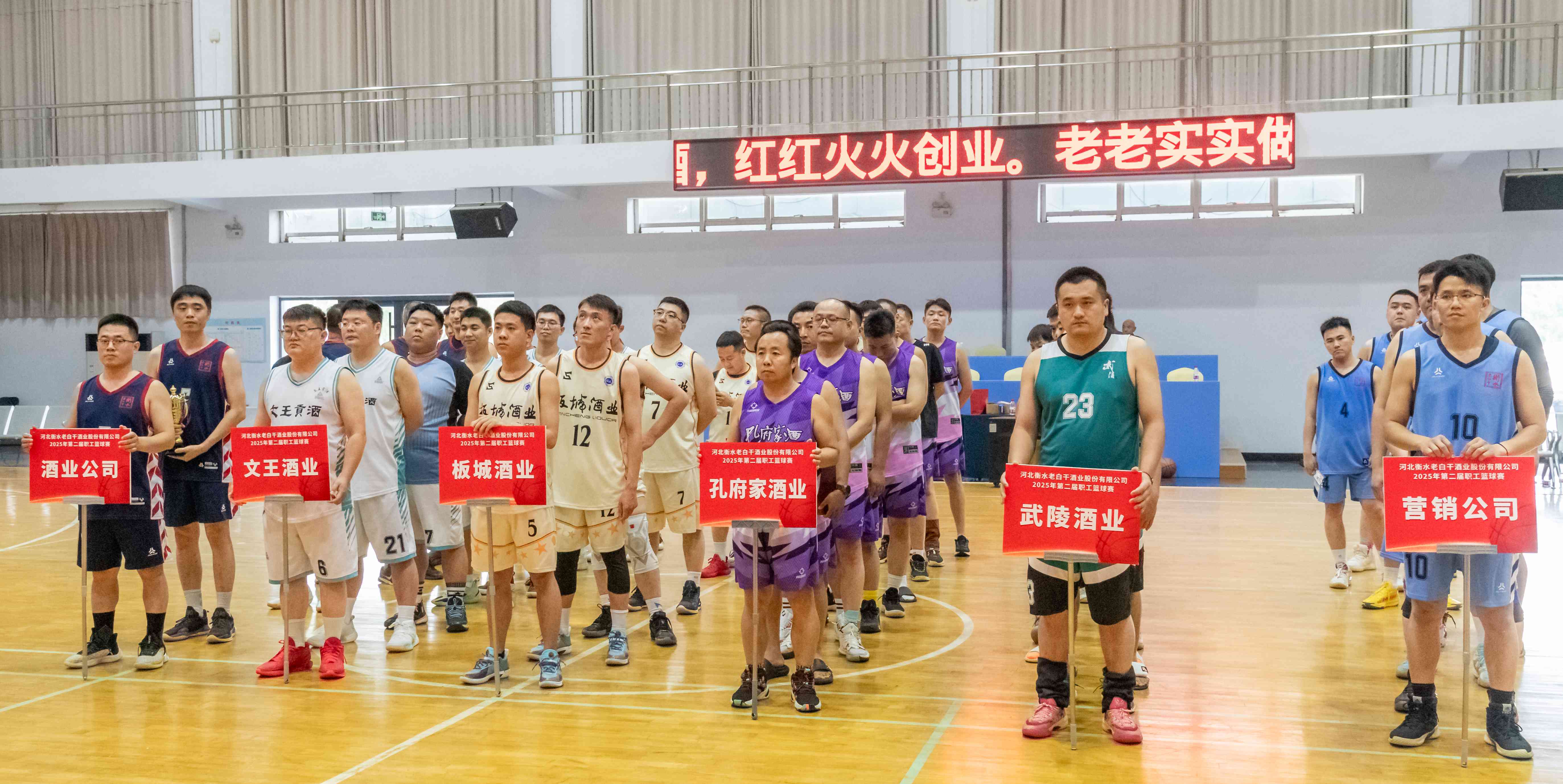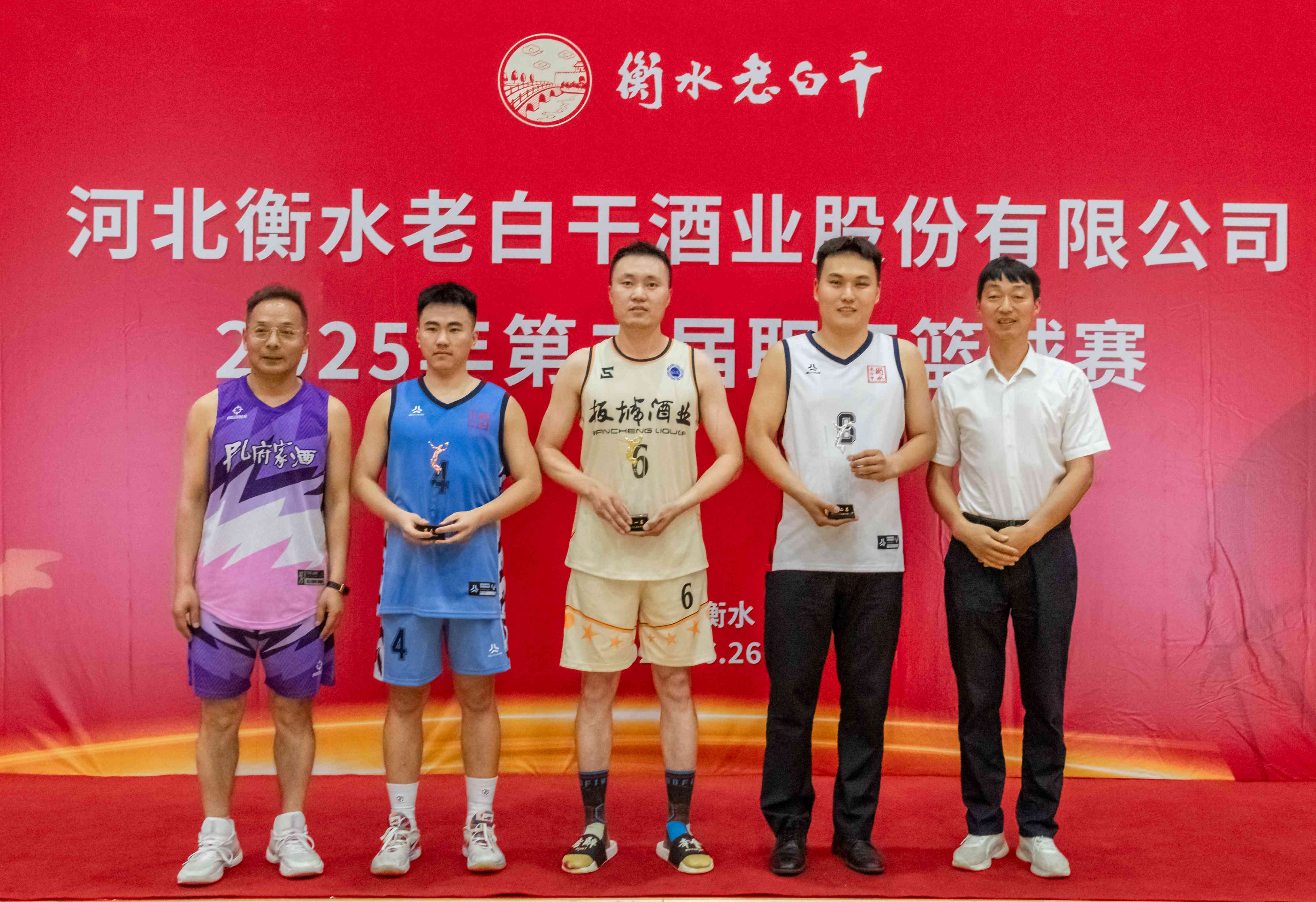 6月25-26日,河北衡水老白干酒業(yè)股份有限公司第二屆職工籃球賽在衡水圓滿落幕。來自衡水老白干酒業(yè)及其旗下板城酒業(yè)、孔府家酒業(yè)、武陵酒業(yè)、文王酒業(yè)等六支精英代表隊(duì)齊聚一堂,共同演繹了一場精彩絕倫的體育盛宴。