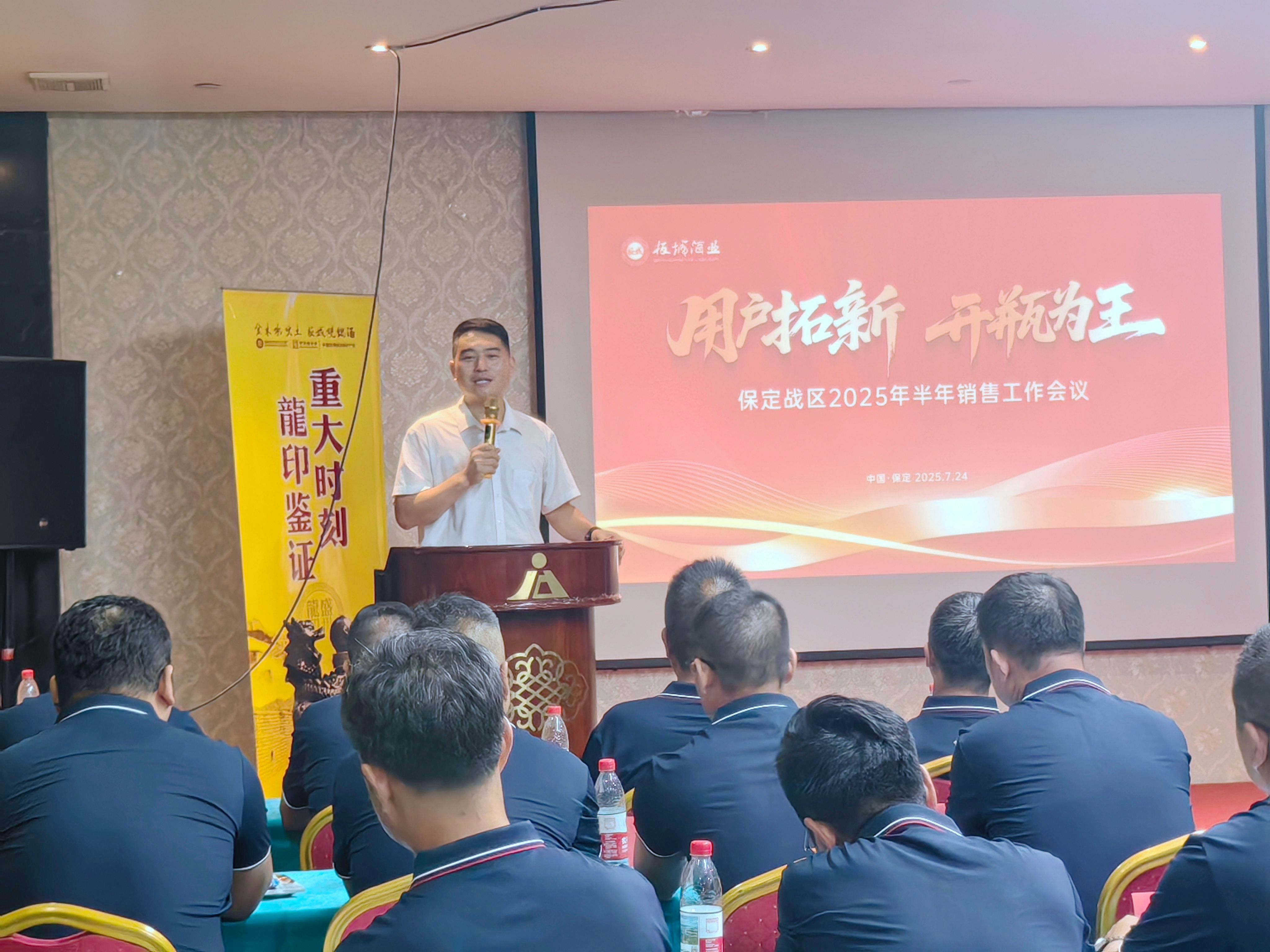7月25日,板城酒業(yè)保定戰(zhàn)區(qū)2025上半年總結會暨Q3經銷商交流會圓滿舉行。本次會議旨在全面總結保定戰(zhàn)區(qū)2025年上半年營銷成果,深入剖析市場形勢,精準部署三季度重點工作,凝聚全體合作伙伴及業(yè)務團隊的奮進力量。