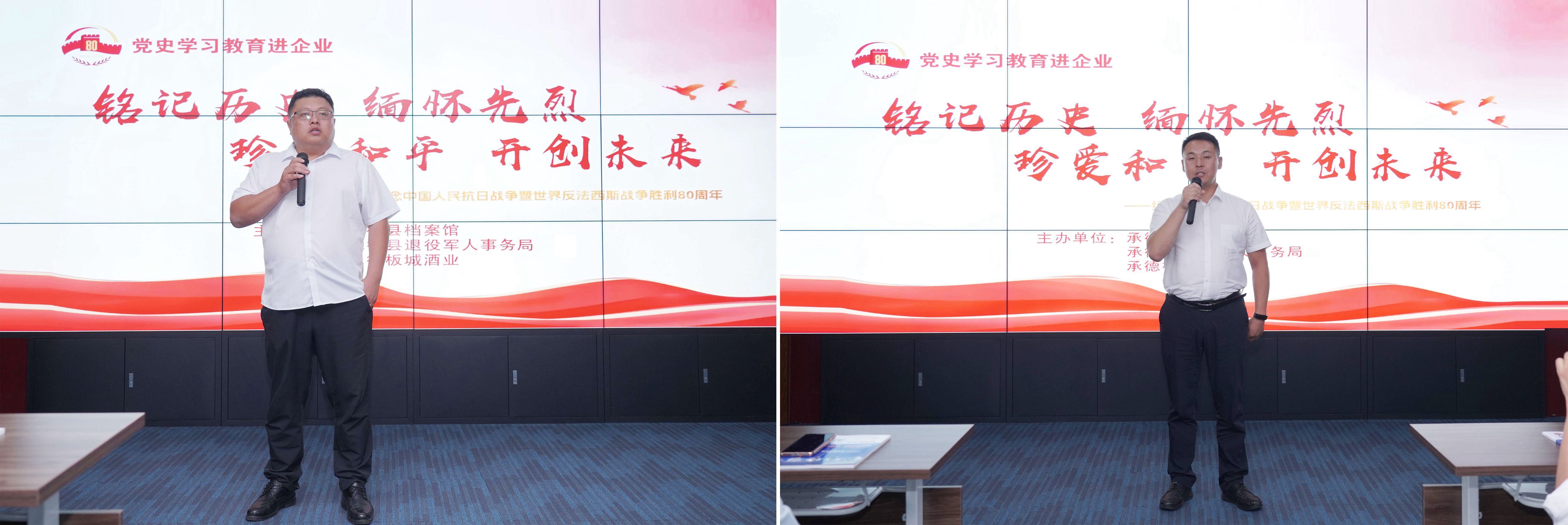 在紀(jì)念中國(guó)人民抗日戰(zhàn)爭(zhēng)暨世界反法西斯戰(zhàn)爭(zhēng)勝利80周年之際,8月20日,板城酒業(yè)聯(lián)合承德縣檔案館、承德縣退役軍人事務(wù)局舉辦本次黨史學(xué)習(xí)教育主題活動(dòng)。