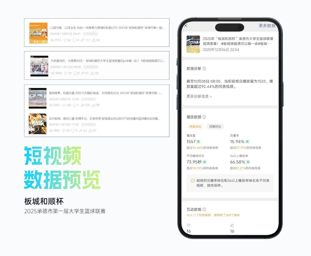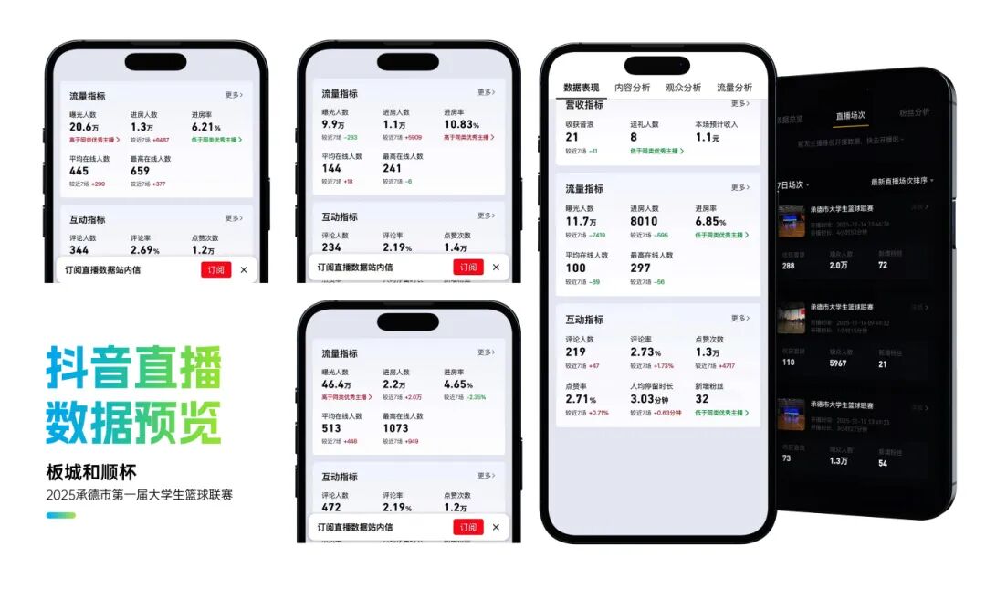 整體活動(dòng)影響力顯著,賽事抖音曝光超214萬(wàn),累計(jì)觀看直播人數(shù)超15萬(wàn)人,現(xiàn)場(chǎng)累計(jì)吸引觀眾逾2萬(wàn)人次,承德市籃球協(xié)會(huì)微信公眾號(hào)相關(guān)閱讀量超2萬(wàn)人次,板城酒業(yè)視頻號(hào)平臺(tái)相關(guān)播放量超2.5萬(wàn)人次。